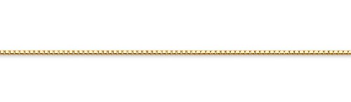 14K Solid Gold Box Chain. Chain width: 1.2mm Available in 16", 18", 20", 22", and 24". 16" weighs approx. 4.0 grams. 18" weighs approx. 4.5 grams. 20" weighs approx. 5.0 grams. 22" weighs approx. 5.5 grams 24" weighs approx. 6.0 grams A very sturdy and popular chain!